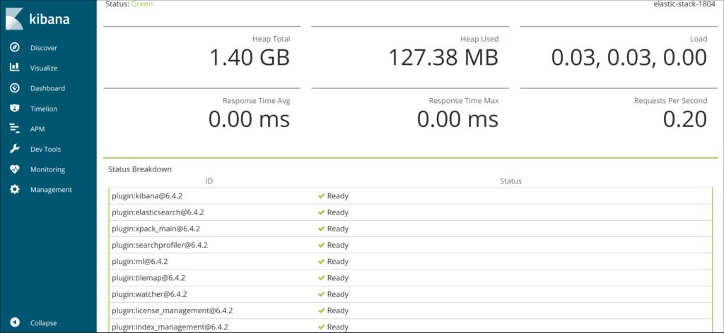 Ahora tiene la pila Elastic instalada en su servidor y configurada para extraer datos estadísticos de su base de datos PostgreSQL administrada de forma regular. Puede analizar y visualizar los datos utilizando Kibana o algún otro software adecuado, que lo ayudará a recopilar información valiosa y correlaciones reales sobre el rendimiento de su base de datos.