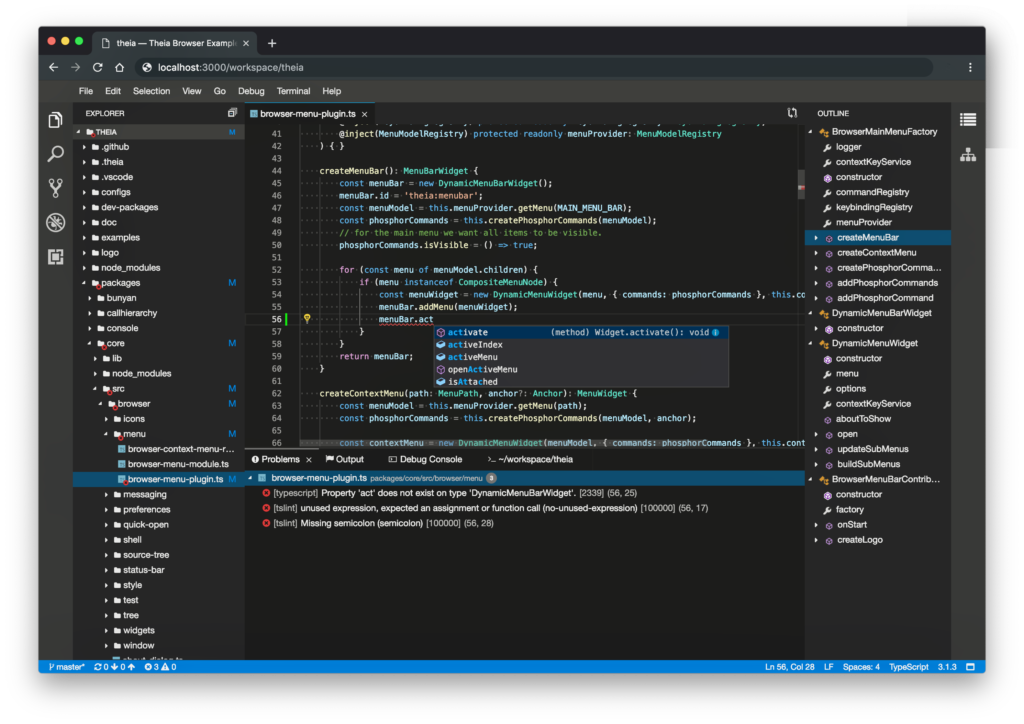 Ha explorado una descripción general de alto nivel de la interfaz de Eclipse Theia y revisado algunas de las características más utilizadas.