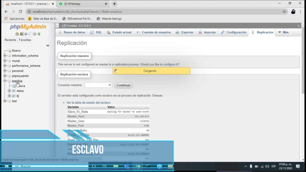 debe coincidir con el usuario de replicación que creó en el Paso 2; y mysql-bin.000001