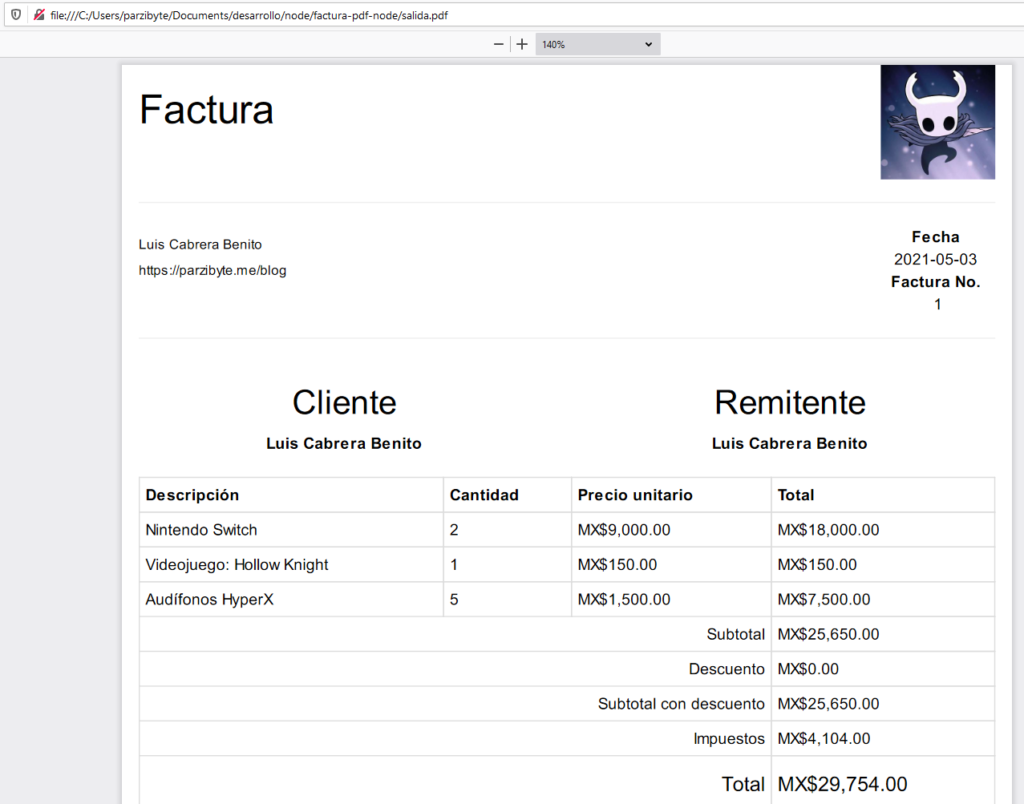 Ahora, si usamos una herramienta como Postman para enviar una solicitud POST a /invoice