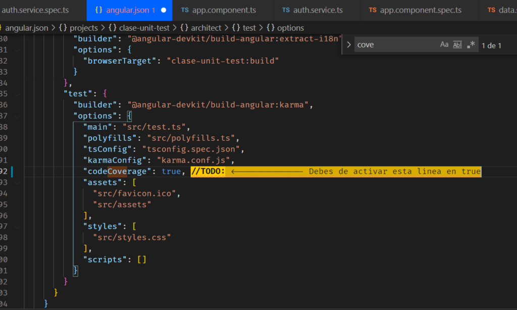 Una vez que hayas realizado los cambios, ejecuta el ng test