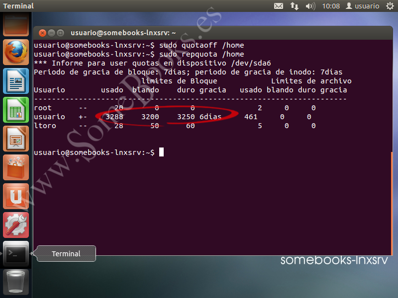 Guardamos y cerramos el archivo. Para comprobar la nueva cuota podemos utilizar el quota