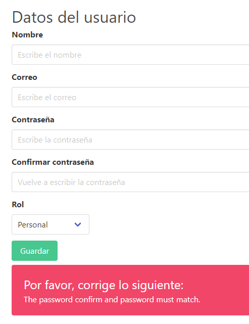 lo que significa que si el usuario proporciona una confirmación de contraseña, también debe proporcionar una contraseña.