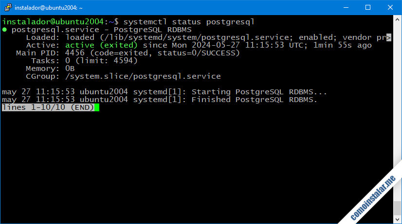 Para salir del indicador de PostgreSQL, ejecute lo siguiente: