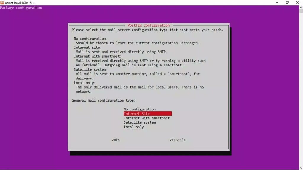 Cuando finalice el proceso de instalación, estará listo para realizar algunas actualizaciones a su configuración de Postfix.