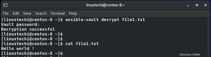 Como puede ver, Ansible cifra el contenido existente de la misma manera que cifra los archivos nuevos.