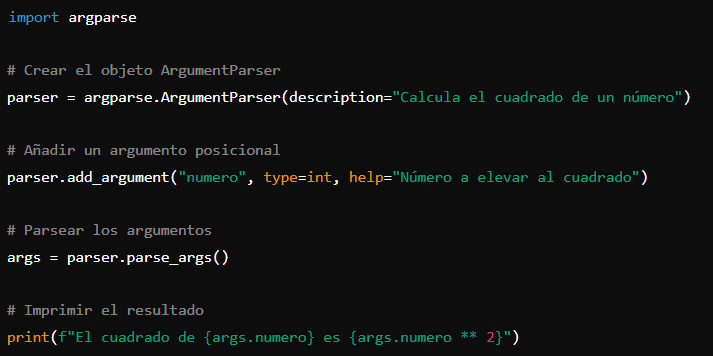 módulo para escribir una interfaz de línea de comandos que acepte un argumento posicional. Los argumentos posicionales (a diferencia de los argumentos opcionales, que analizaremos en una sección posterior) se utilizan generalmente para especificar las entradas obligatorias del programa.