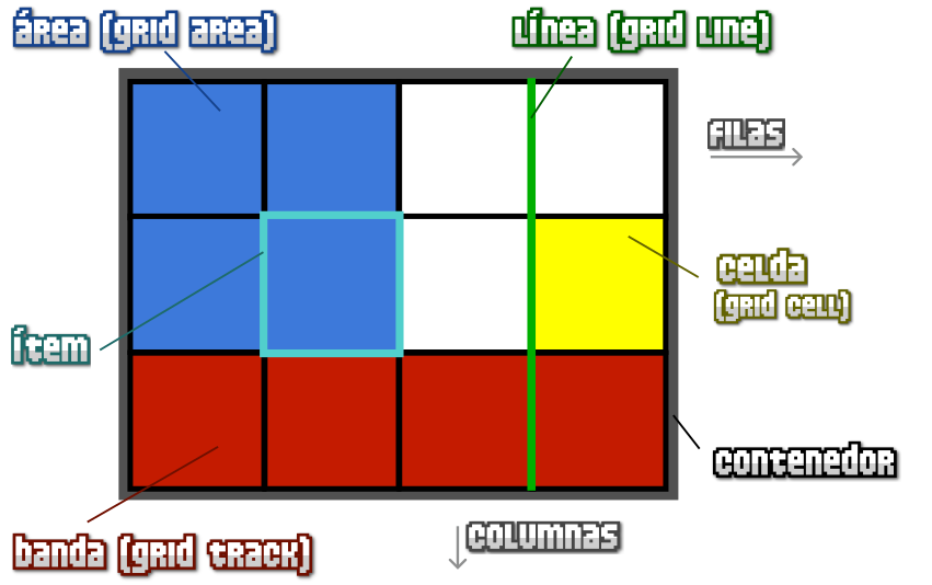 Se introducen algunos conceptos con CSS Grid y es una buena idea familiarizarse con el vocabulario: