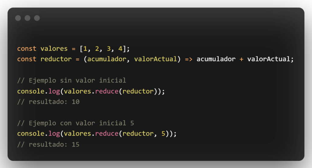 (5 + 10 + 15). Esto funciona bien, pero podemos hacer esto con reduce