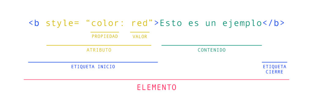 El siguiente diagrama ilustra cómo se utilizan comúnmente las etiquetas en elementos HTML: