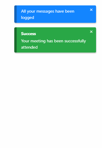 Se incluyen varios tipos de notificaciones: éxito, advertencia, información y predeterminada.